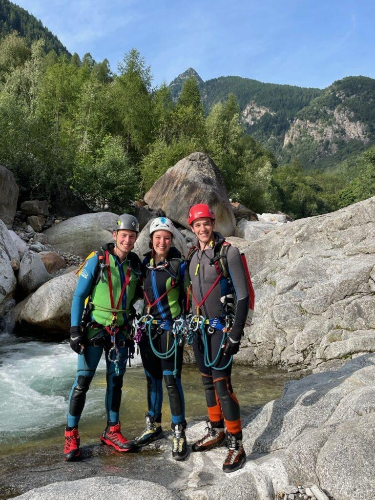 On to the final and most exciting leg of my trip – canyoning in Italy and Switzerland! For two weeks, some fellow Gordon Rovers and I rented a car and followed the top canyoning guidebook, taking on some of Europe’s best canyons. We started in Ticino, Switzerland, known to be one of the best canyoning areas in the world, and it certainly did not disappoint. Smashing through as many as three canyons in a day, we took on every jump, slide, and abseil, with each canyon full of amazing features, stunning landscapes, and lots of adrenaline! Every day, we made sure to say a prayer to the canyon gods at one of the multiple shrines that we found on every walk-in, yet we still ended up with several broken helmets, two ankle injuries, and a stomach bug from drinking dirty canyon water.